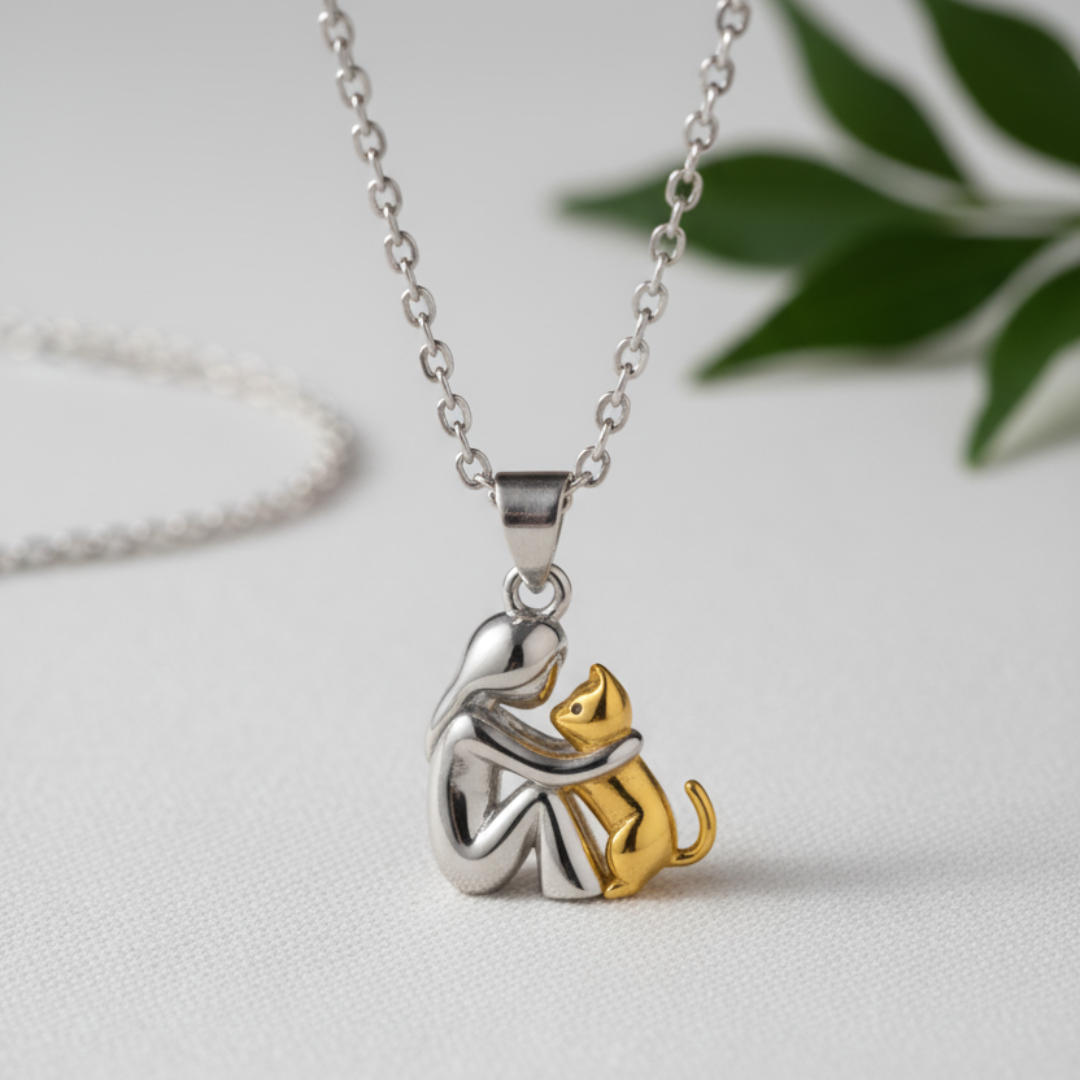 Ein Schmuckstück voller Liebe, das die besondere Bindung zwischen Mensch und Katze zeigt: ein zeitloses Symbol für Loyalität, Freundschaft und unendliche Liebe.